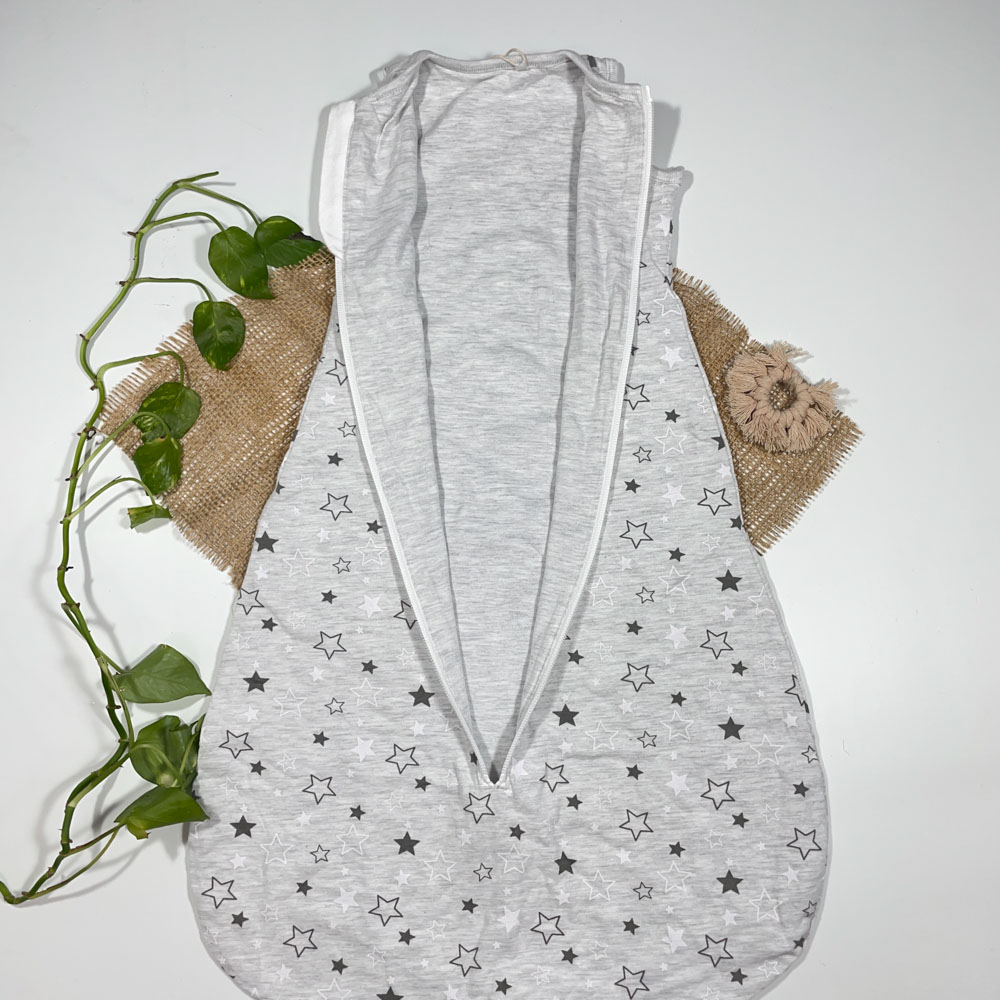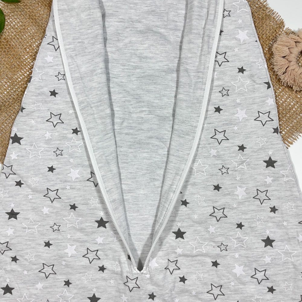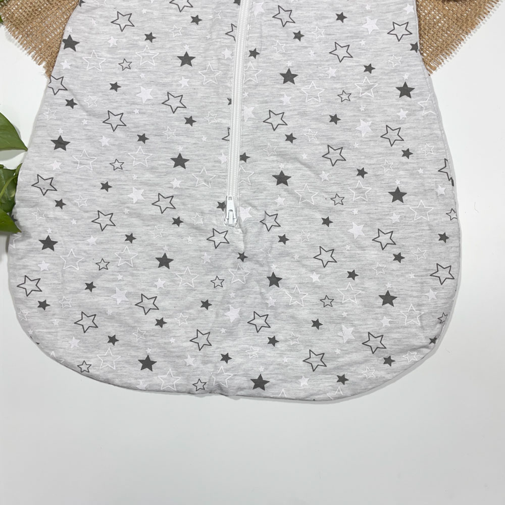 کیسه خواب نوزادی آستین کوتاه برند Poco Plano طرح ستاره ستاره ای طوسی روشن رنگ – 0 تا 6 ماه